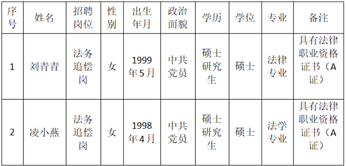 現將安康市財信融資擔保有限公司招聘高層次人才擬聘用人員名單公示如下:
